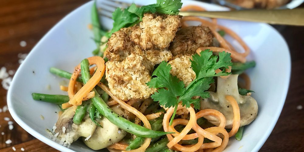 Imagine this: golden, crunchy coconut-crusted tofu bites sitting proudly on a bed of silky, vibrant mango curry that’s sweet from fresh fruit, warmly spiced, and just the right amount of heat. Every bite...