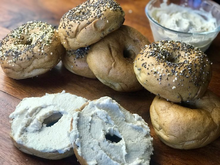 Let your bagels cool completely before serving. I highly suggest serving them with some Cultured Cashew Cream Cheese!