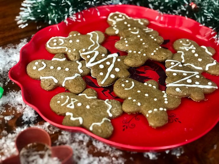 I’m not one to brag (that’s a lie), but these gluten free cookies are better than most of the rock hard gingerbread I’ve had in the past. They’re so soft and subtly sweet that it’s possible I ate a whole batch before decorating them and ended up making a second. I have zero guilt about it because molasses is an awesome source of iron and I’m declaring these cookies a health food! So pour yourself a glass of (vegan) eggnog and let’s get started! This is how we made them: