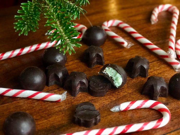 I’m still trying to get out of buying anyone an actual present and am trying to make sure everyone gets candies that they like! One of my favorite dining experiences as a kid was getting the little peppermint chocolates at Olive Garden after eating my heaping pile of fettuccini alfredo. This healthier version is so good and you will not have the shame and embarrassment of having eaten at a midwestern chain take on Italian food! Plus, these make the cutest presents. This is how we made it: