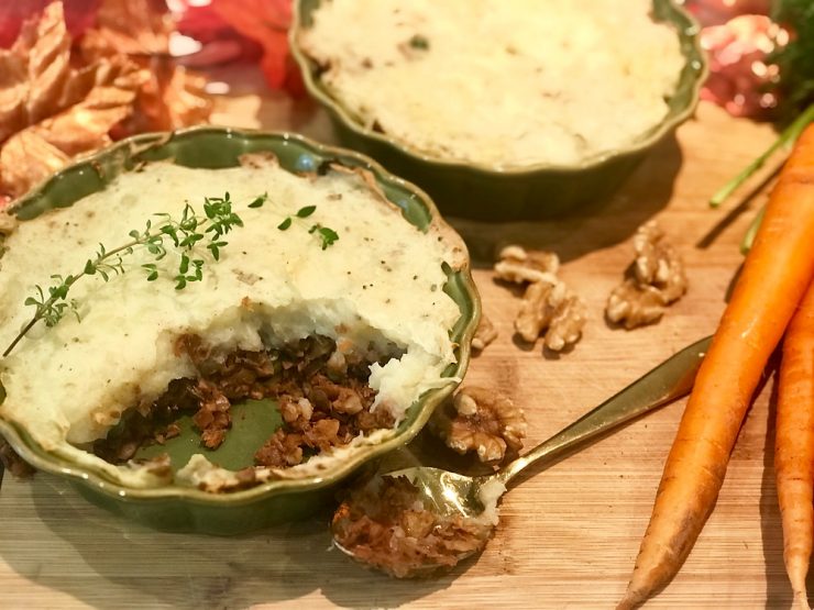Is there any bad way to eat a potato? Roasted, air fried, totted, chipped, saladed… I will eat any potato, but being from the midwest, I have a soft spot in my vegan heart for mashed potatoes! Here’s a great way to eat mashed potatoes as a pie! This awesome (oil free option) recipe is made from protein-rich lentils and walnuts, and is smothered in everyone’s favorite food! Plus, who doesn’t love a casserole? This is how we made it: